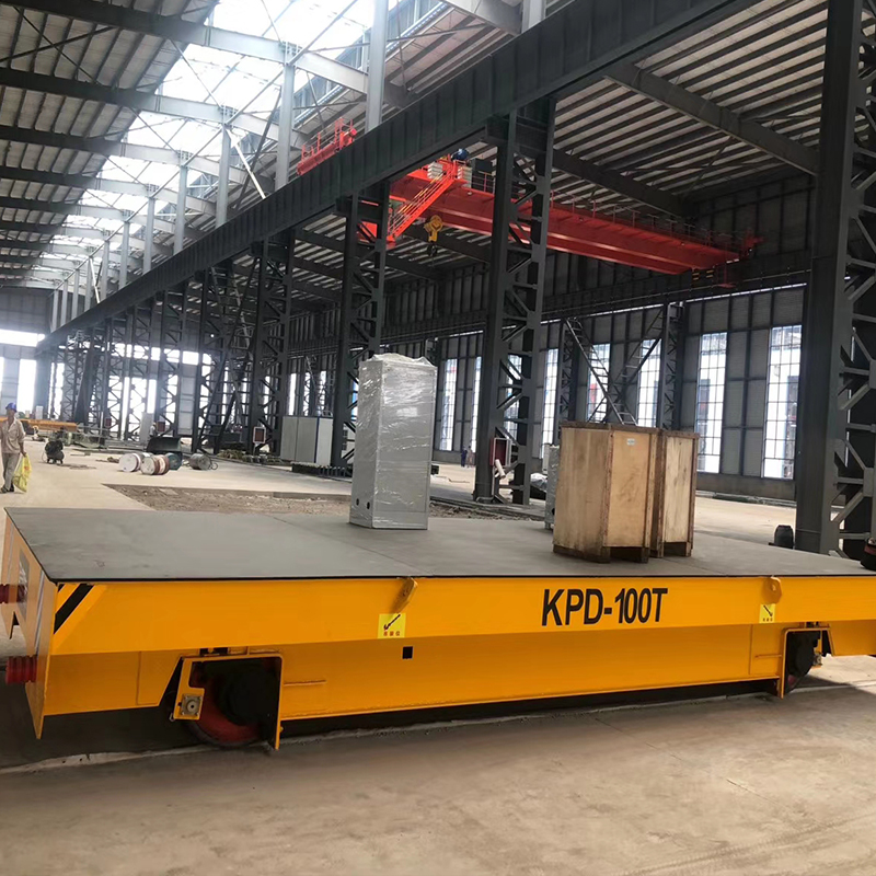 该系列电动平车采用箱式梁结构,具有承载力强、不变形、启动平稳、启动力矩大、对减速机冲击小、电压低、使用寿命长、运行距离的不受限制等优点。与KPX蓄电池供电电动平车相比,避免了蓄电池维护和充电麻烦等缺点,但对轨道铺设要求较高(需要绝缘处理轨道),适用于载重量不大、使用频率较高、中长距离运输的场合。在运行距离较长时,需要多个变压器供电。